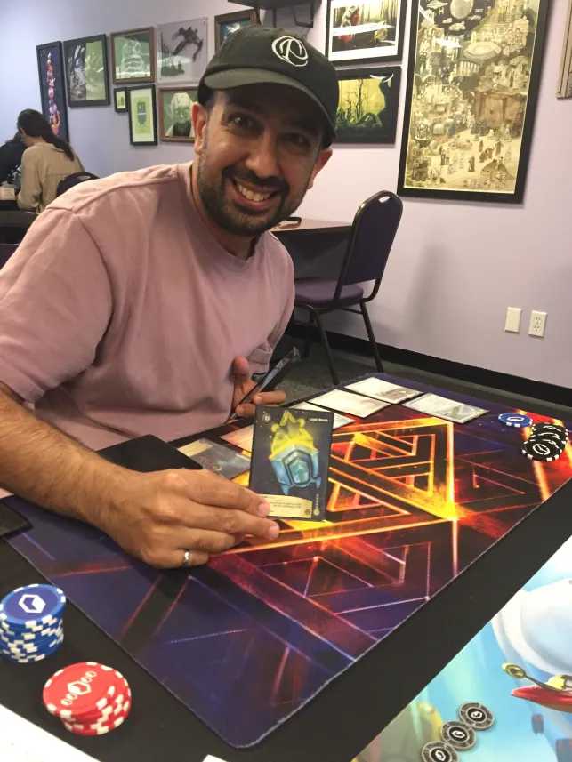 Another member of testing group Logic Bomb, Yasser relishes the head-to-head competitive nature of a game of Netrunner, the community of people in the game, and the satisfaction one gets when playing a lesser-known but superior game (“In pop music terms, if games like MtG are Taylor Swift, Netrunner is Carly Rae Jepsen or Sophie.”). Yasser tends to play Criminal and NBN decks, but more generally decks that are heavy on interaction and misdirection. In his words, “if they’re thinking, I’m winning!”